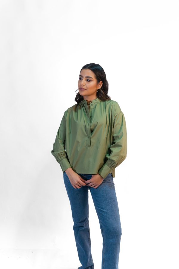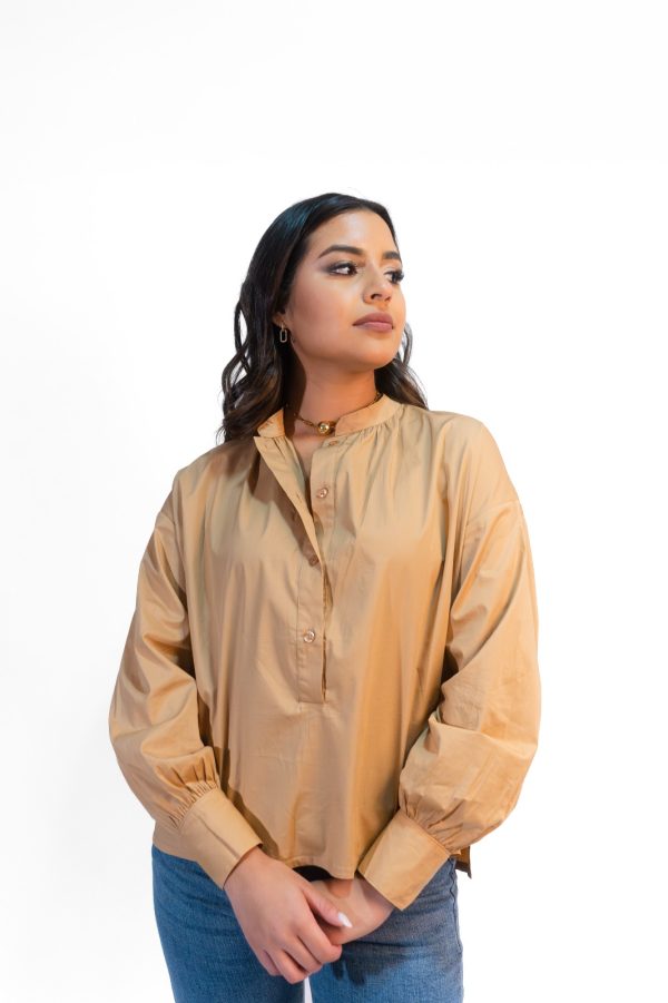 Camisa oversize 4 botones en la parte frontal sin cuello.